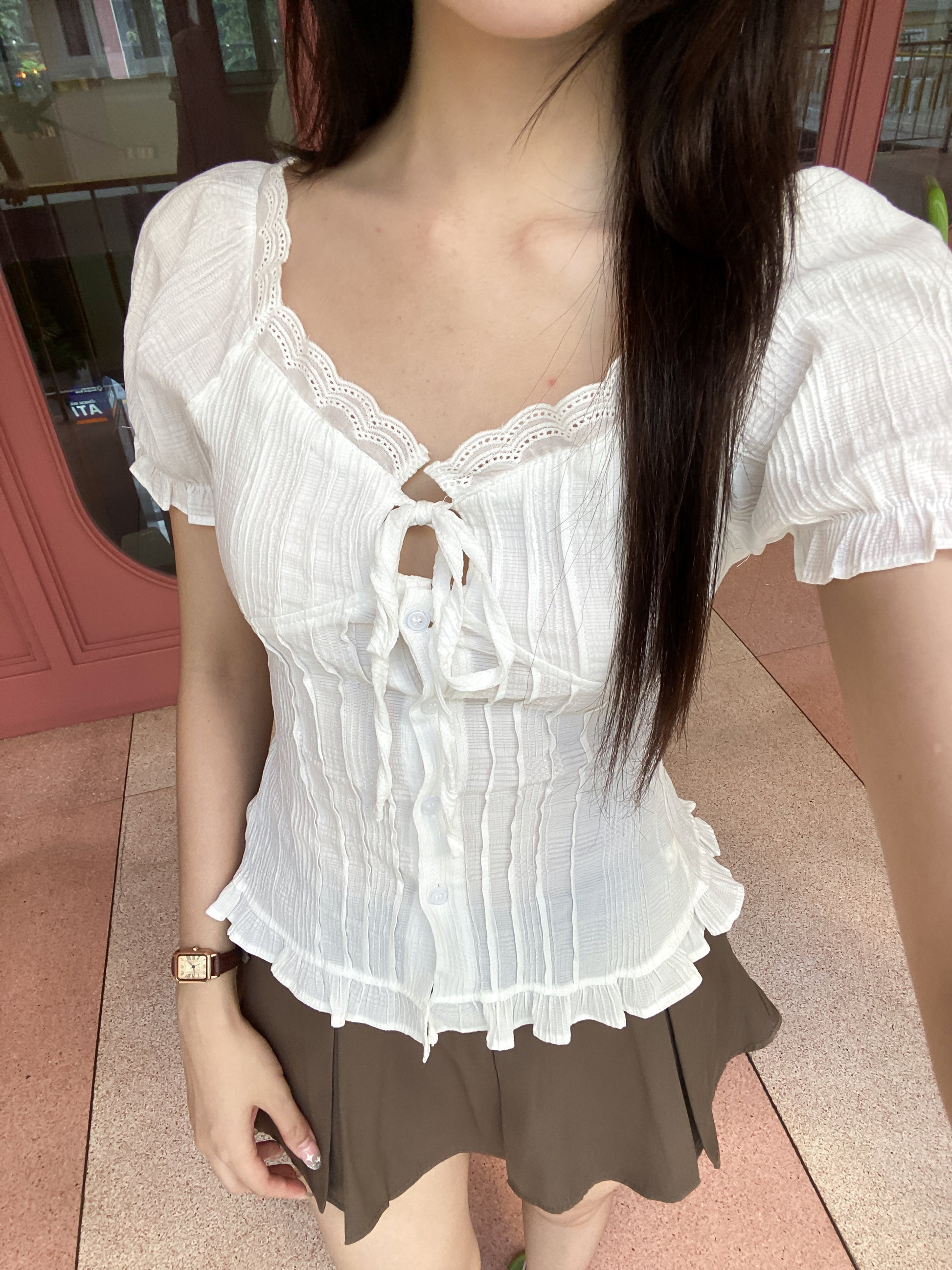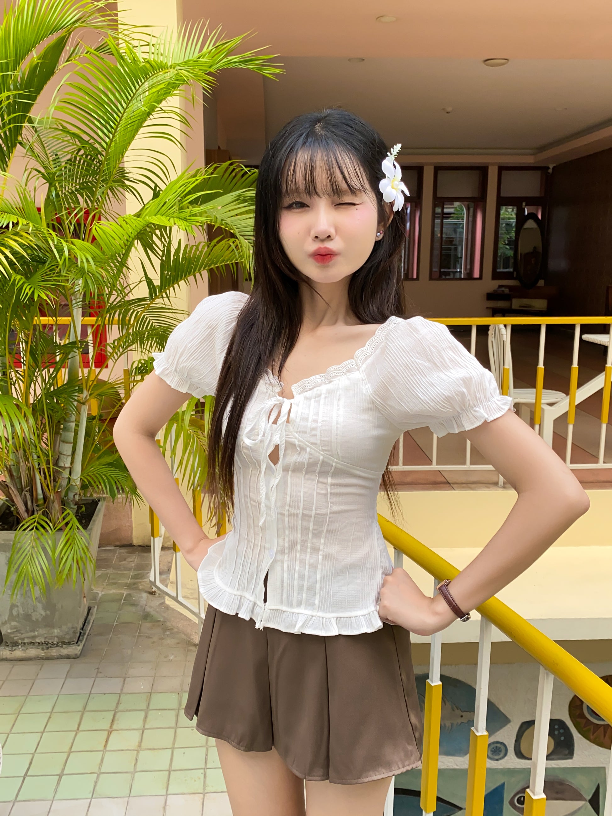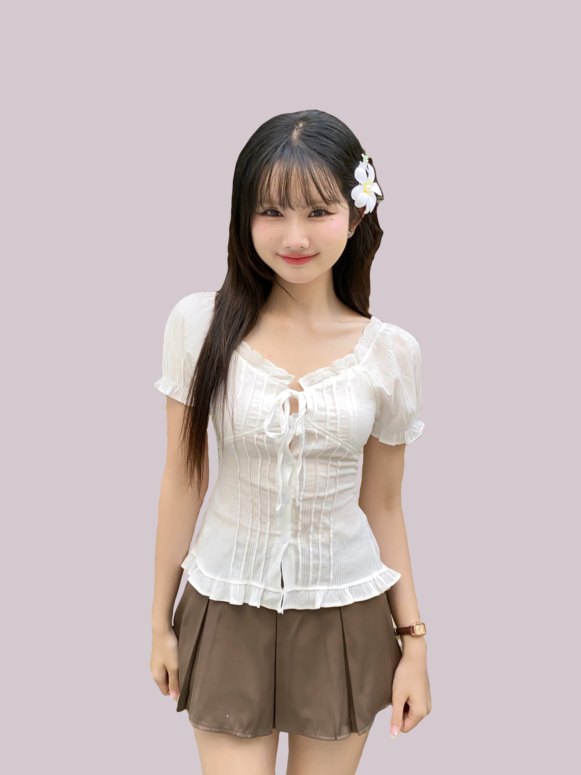 • Style: Versatile romantic piece, perfect for pairing with pleated skirts, tailored shorts, or denim