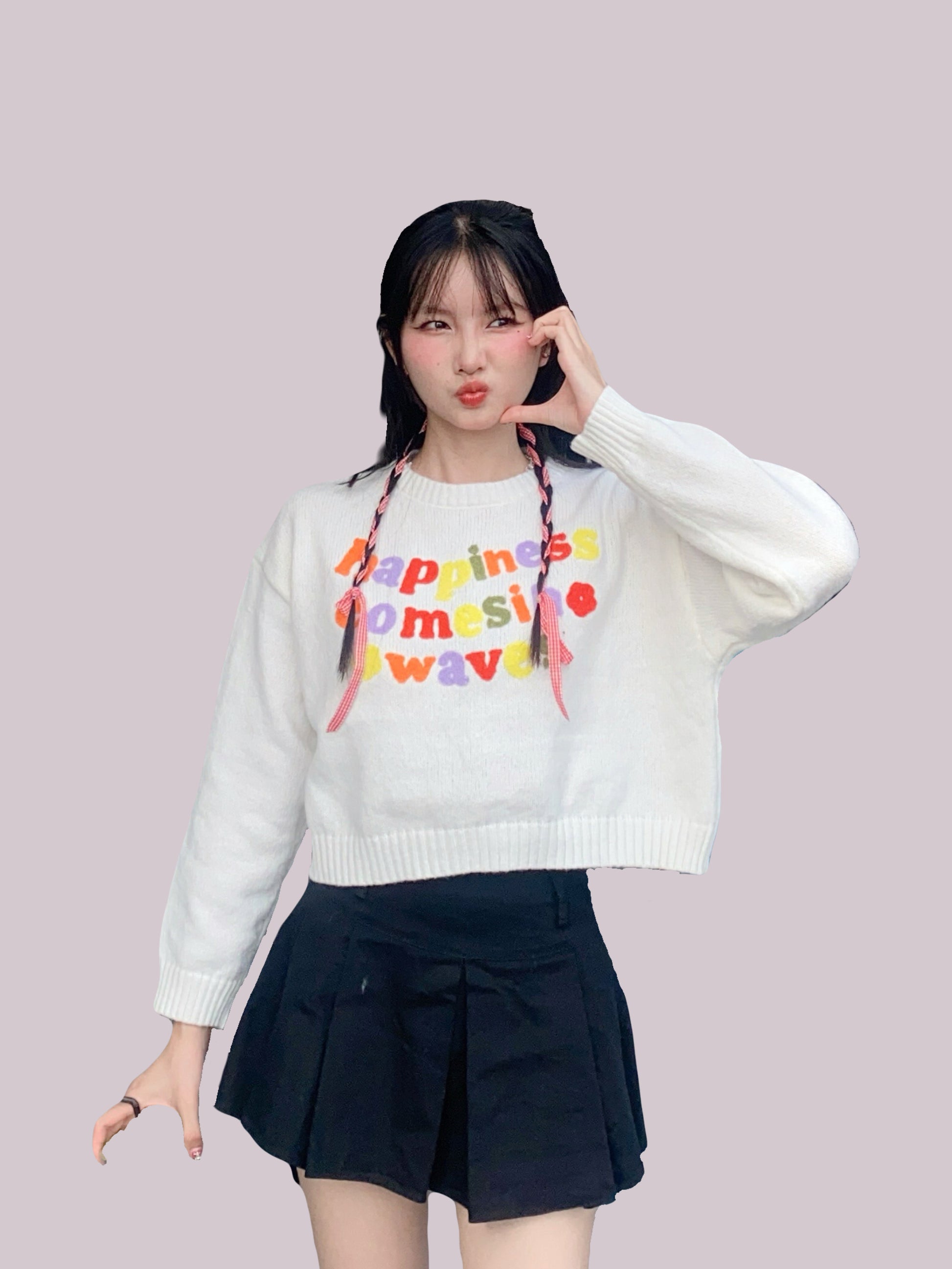 The Happiness Sweater is all about good vibes! With its colorful “Happiness Comes in Waves” embroidery and cozy oversized fit, it’s the perfect piece to brighten up your wardrobe. Made from soft knit fabric, it’s lightweight yet warm — ideal for layering or lounging in style.
