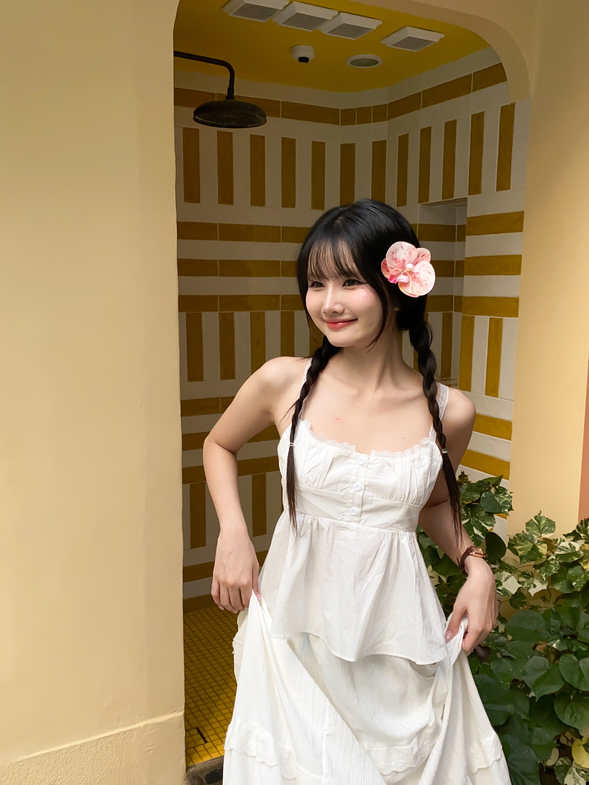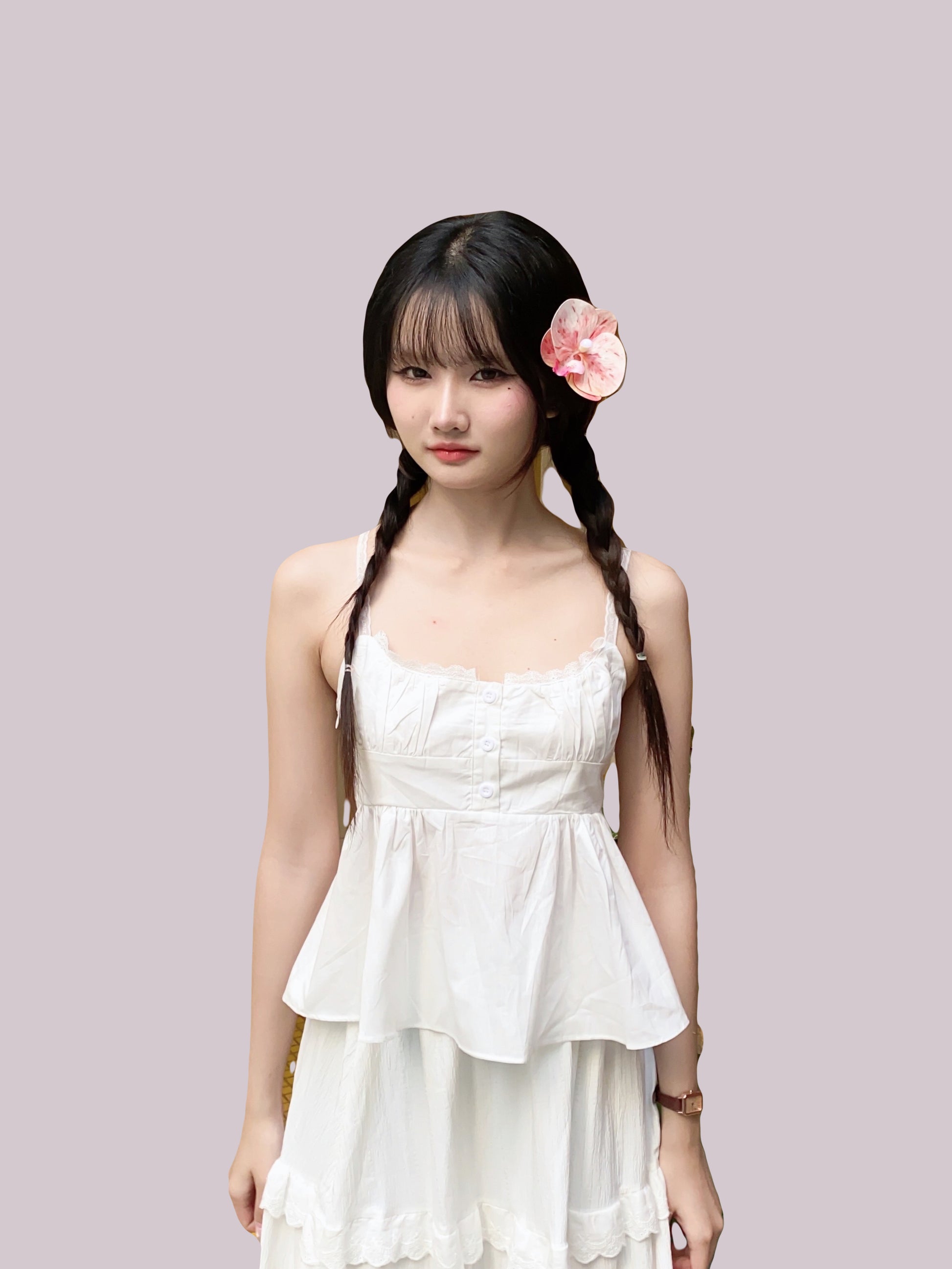The Kiko Top is a charming sleeveless top available in white and black, perfect for casual or dressy occasions. Its flattering peplum silhouette gives a flowy, feminine touch, while the subtle button details and ruched neckline add elegance. The adjustable spaghetti straps ensure a comfortable fit for all body types. Whether paired with skirts or shorts, this top is designed to make you feel effortlessly chic.