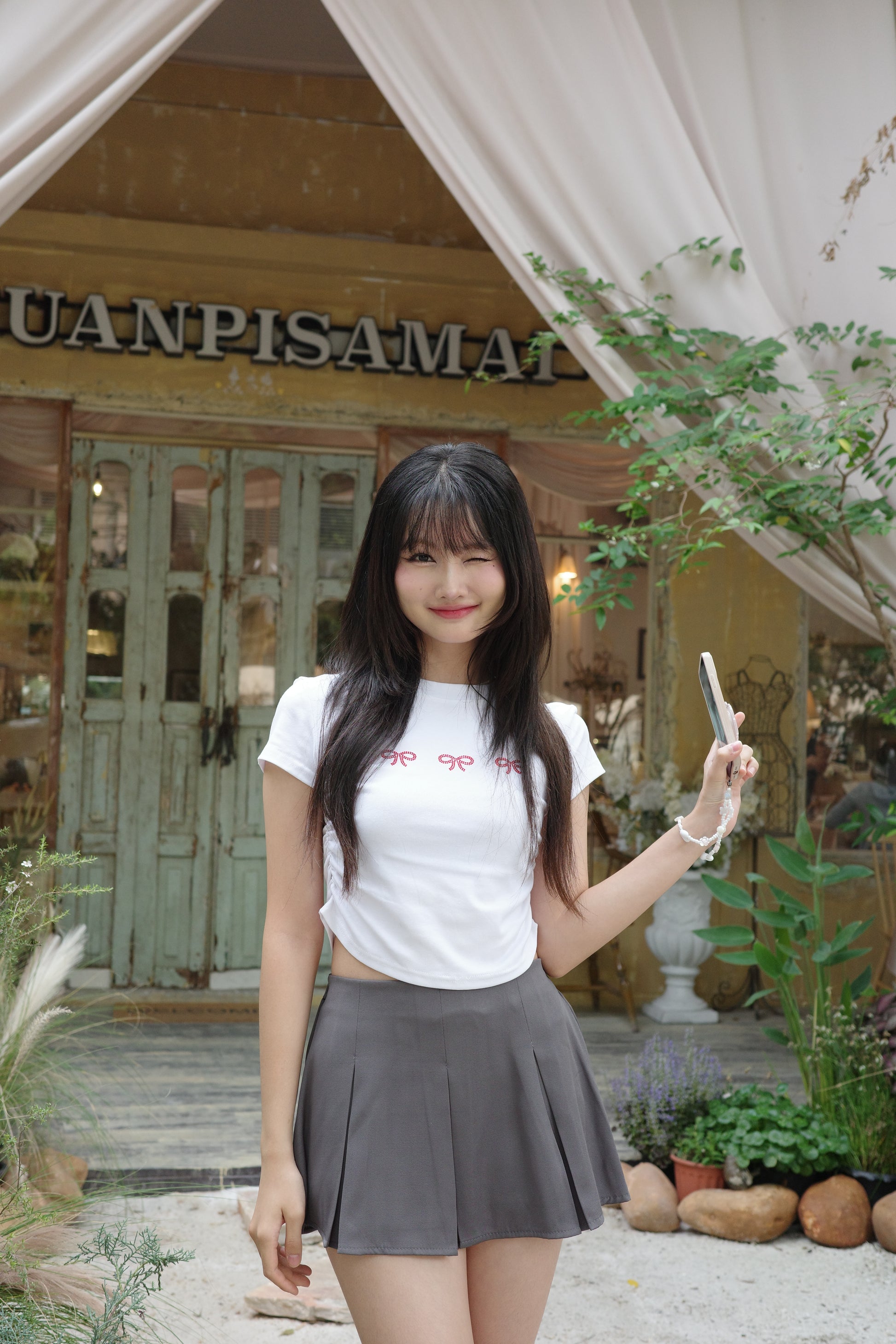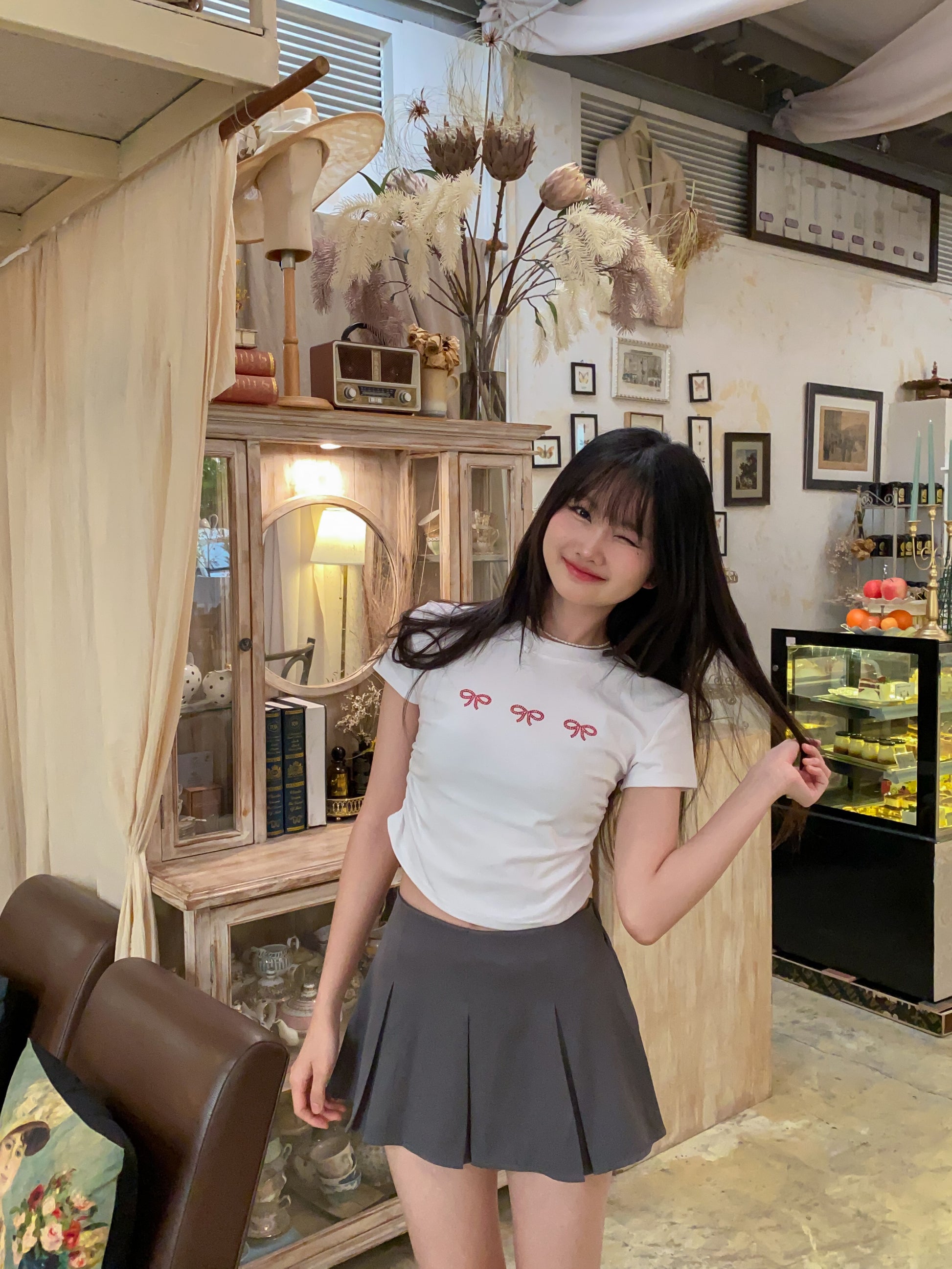 Pair it with a fitted tee or cardigan for that sweet, casual look – or dress it up with a statement top and boots. Available in 3 versatile shades to match every vibe.