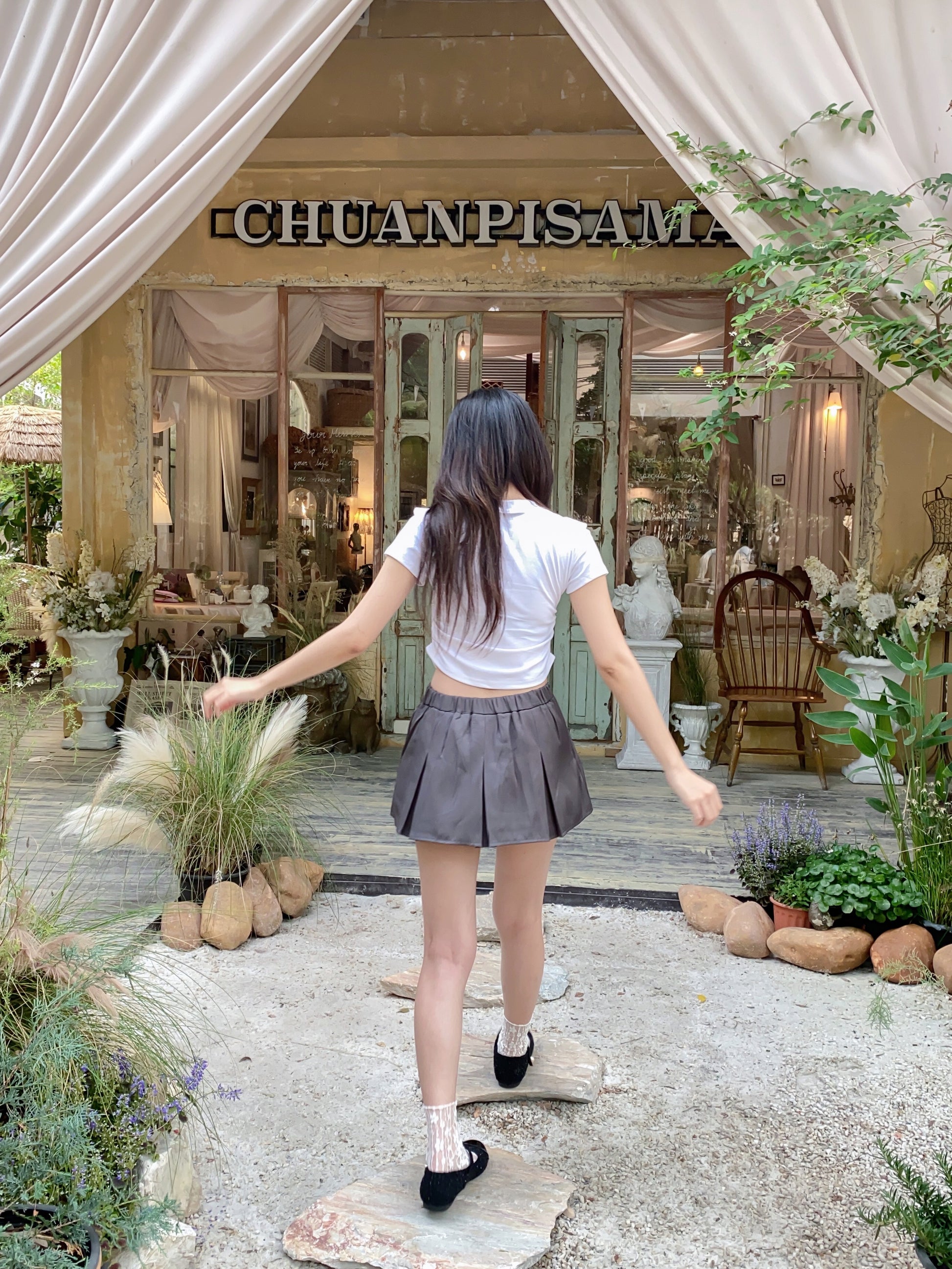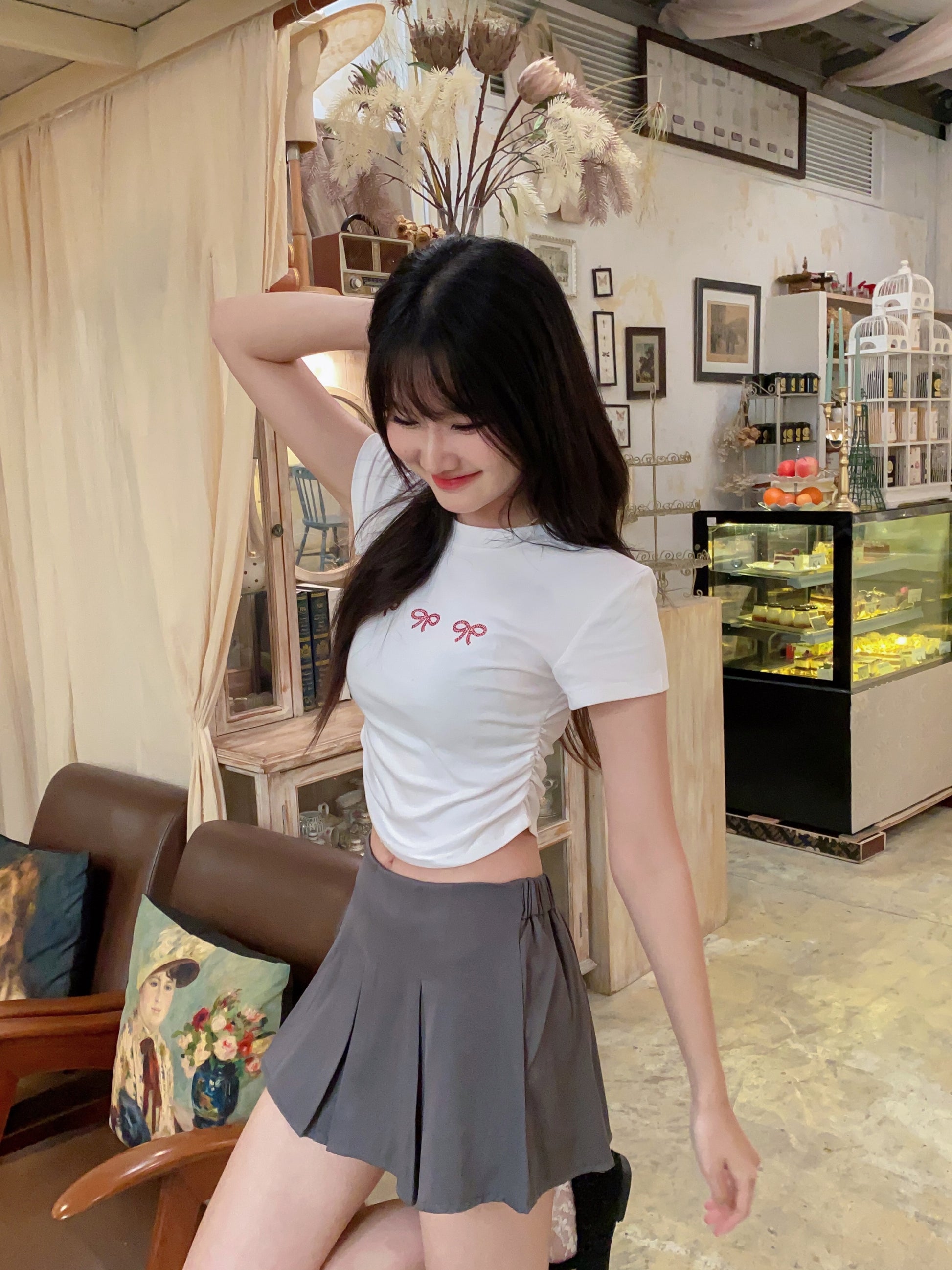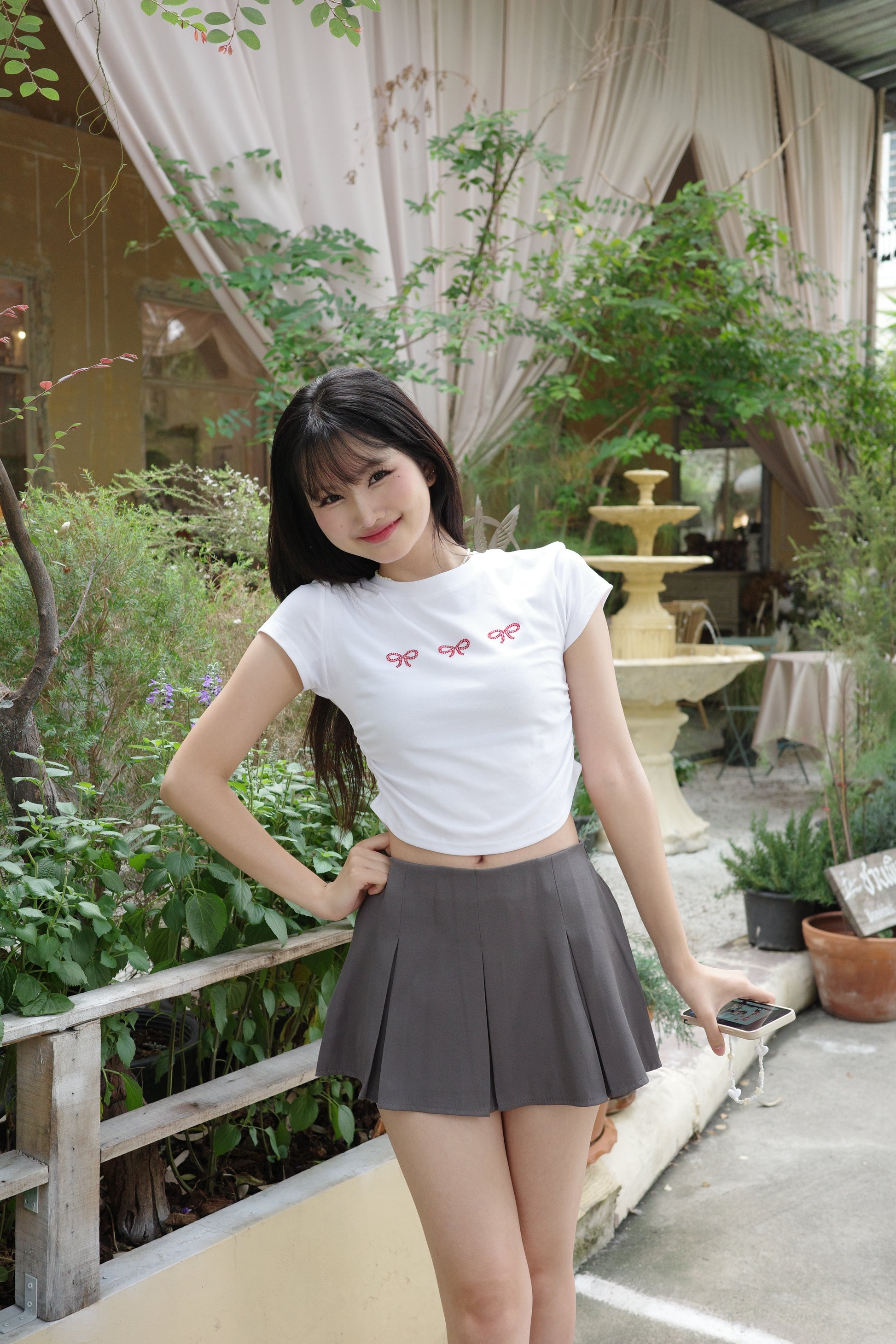 - Design: Pleated mini skirt