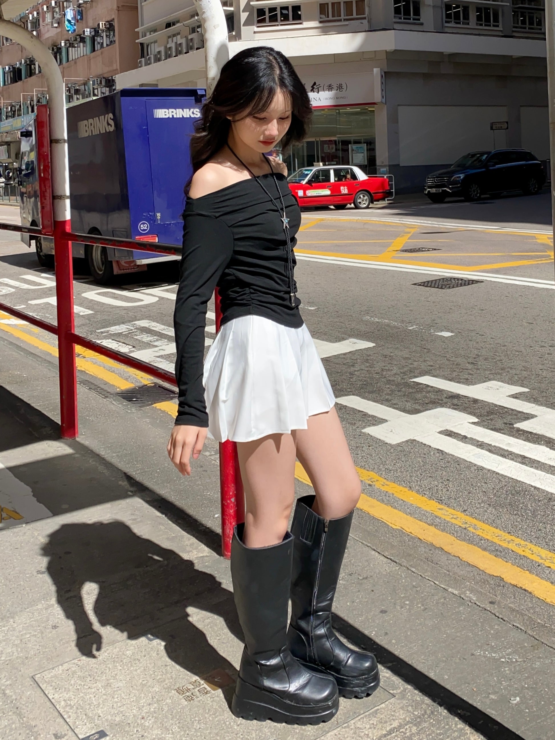 • Design: Off-shoulder long sleeve top with draped ruching details across the chest and sides