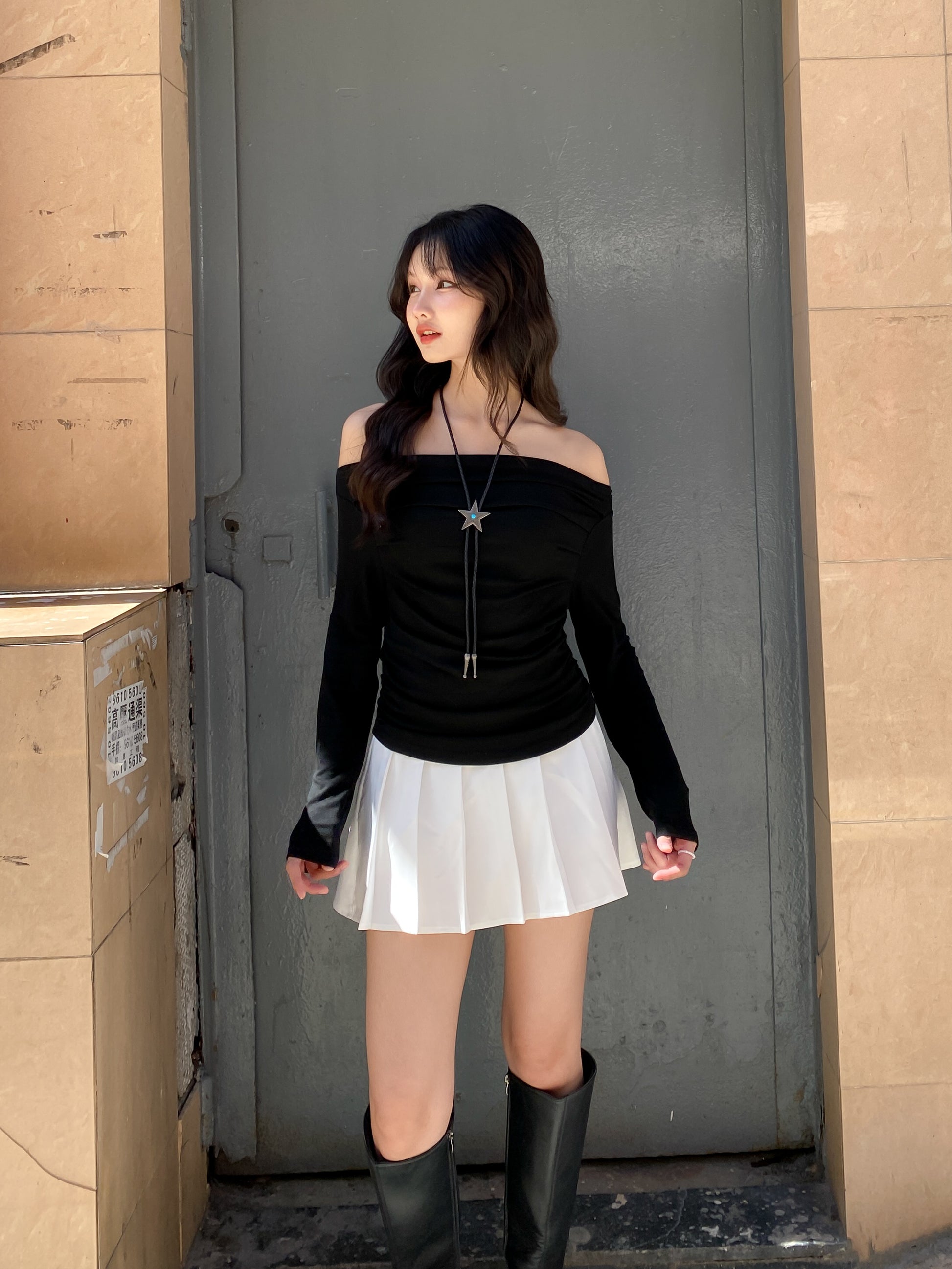The Nami Top blends minimal elegance with a soft, feminine touch. Designed with an off-shoulder neckline and flattering ruching details, it creates a beautifully draped silhouette. Available in versatile cream and black, this top is perfect for dressing up or down — from daytime dates to evening outings.