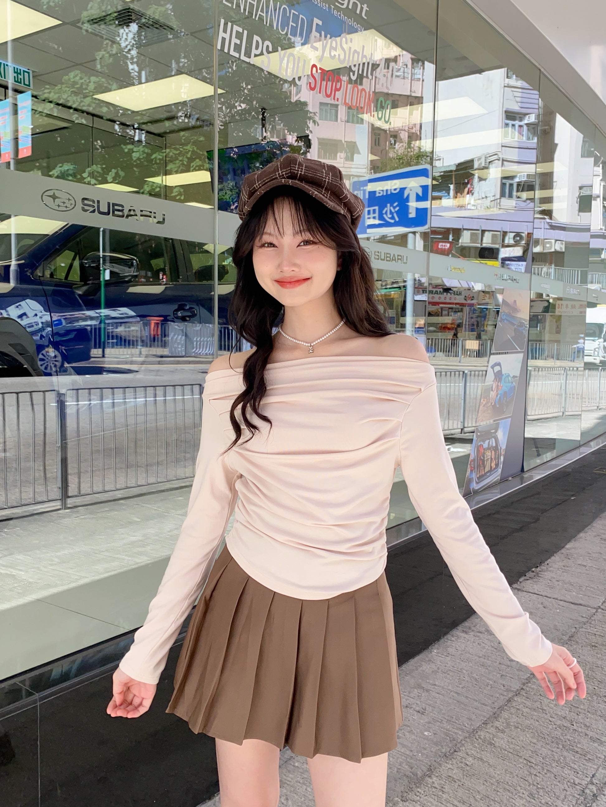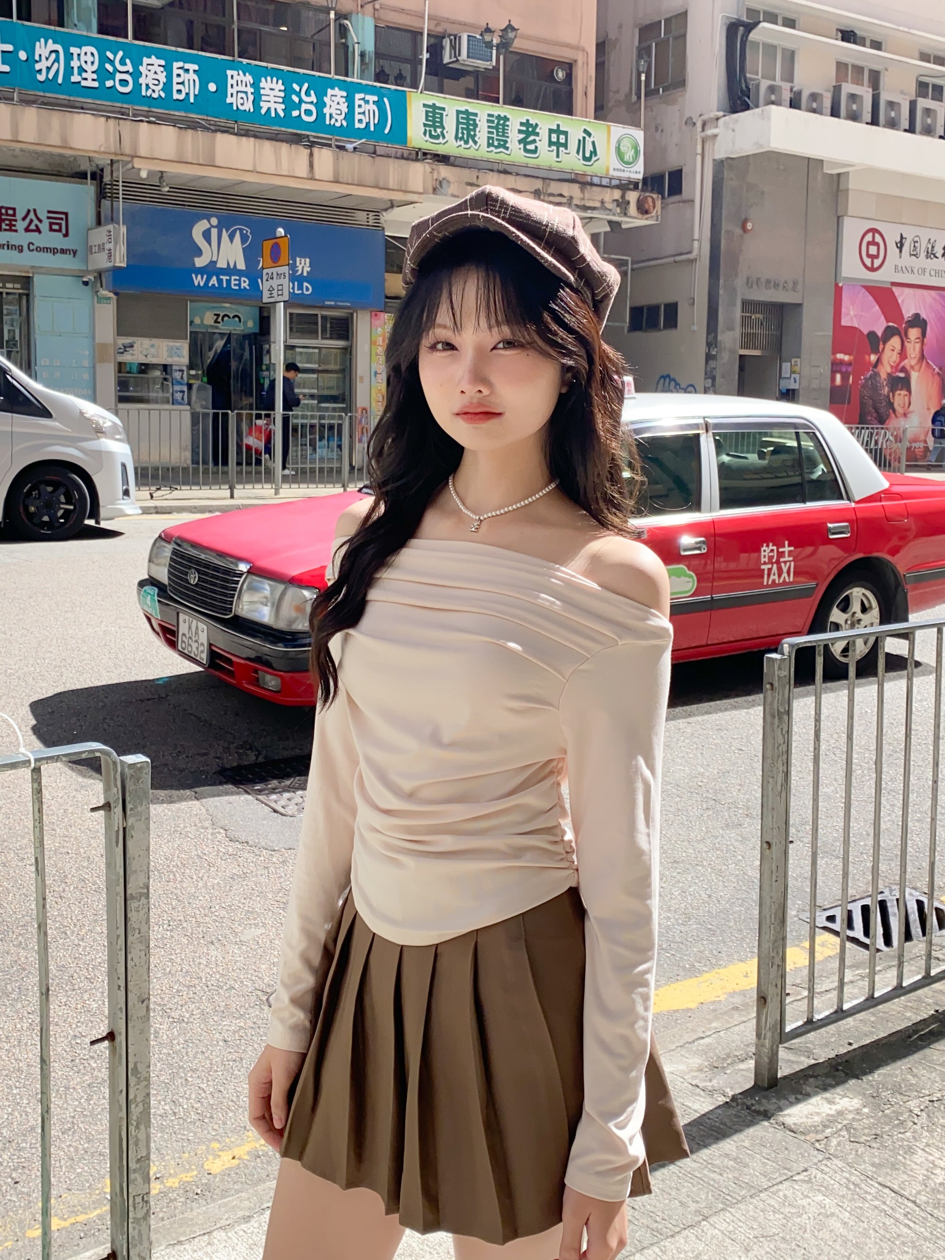 - Design: Off-shoulder long sleeve top with draped ruching details across the chest and sides