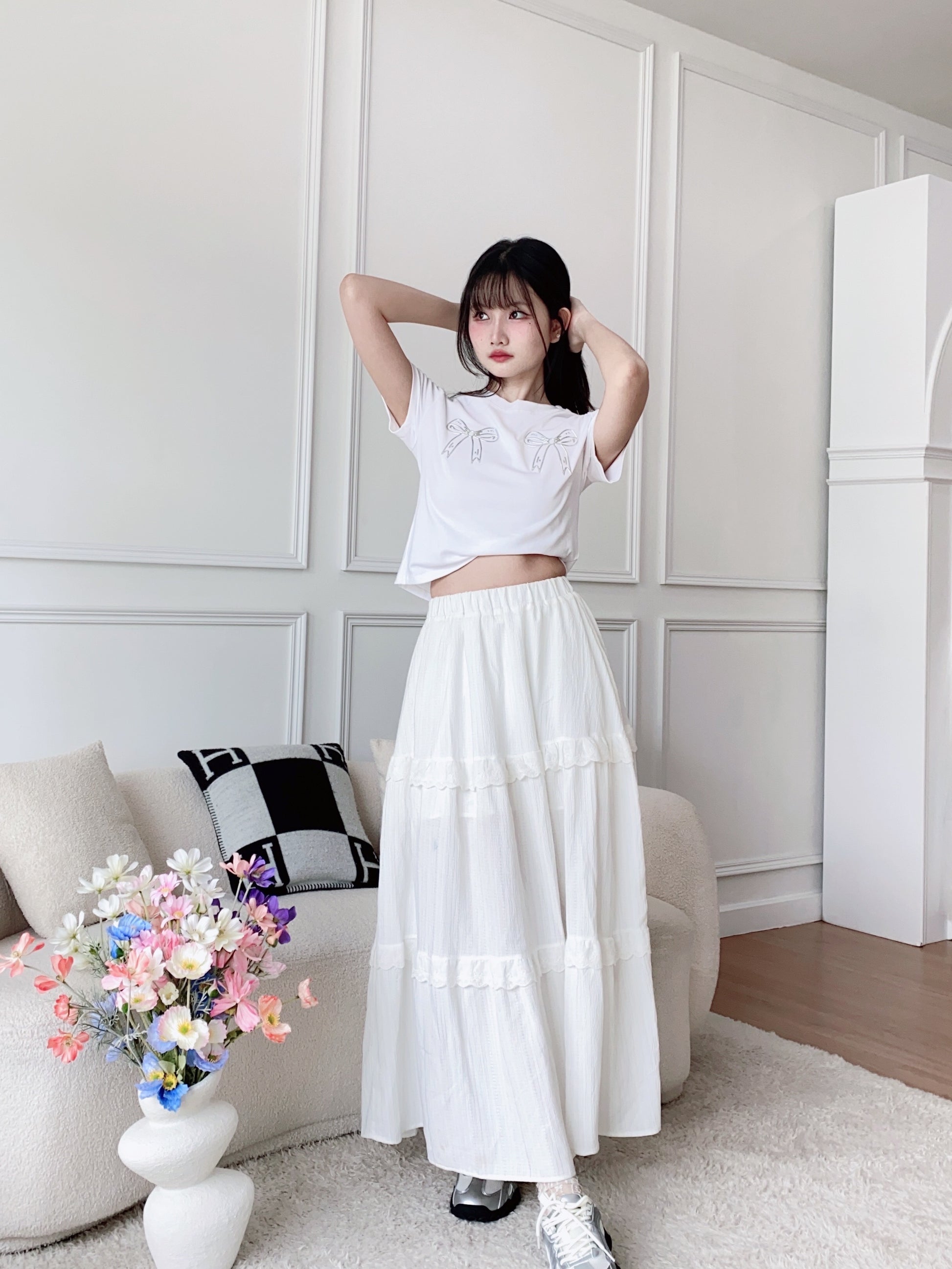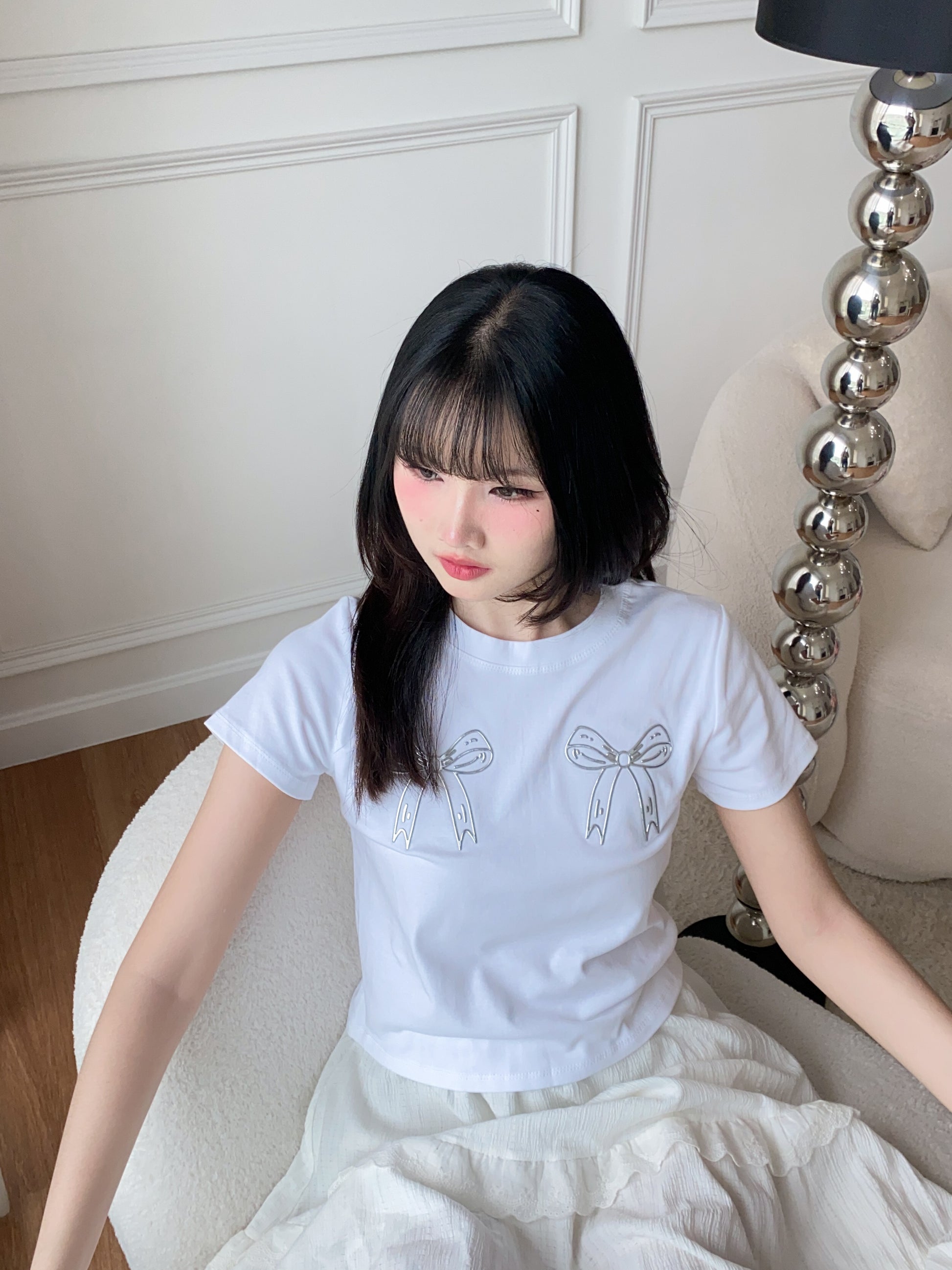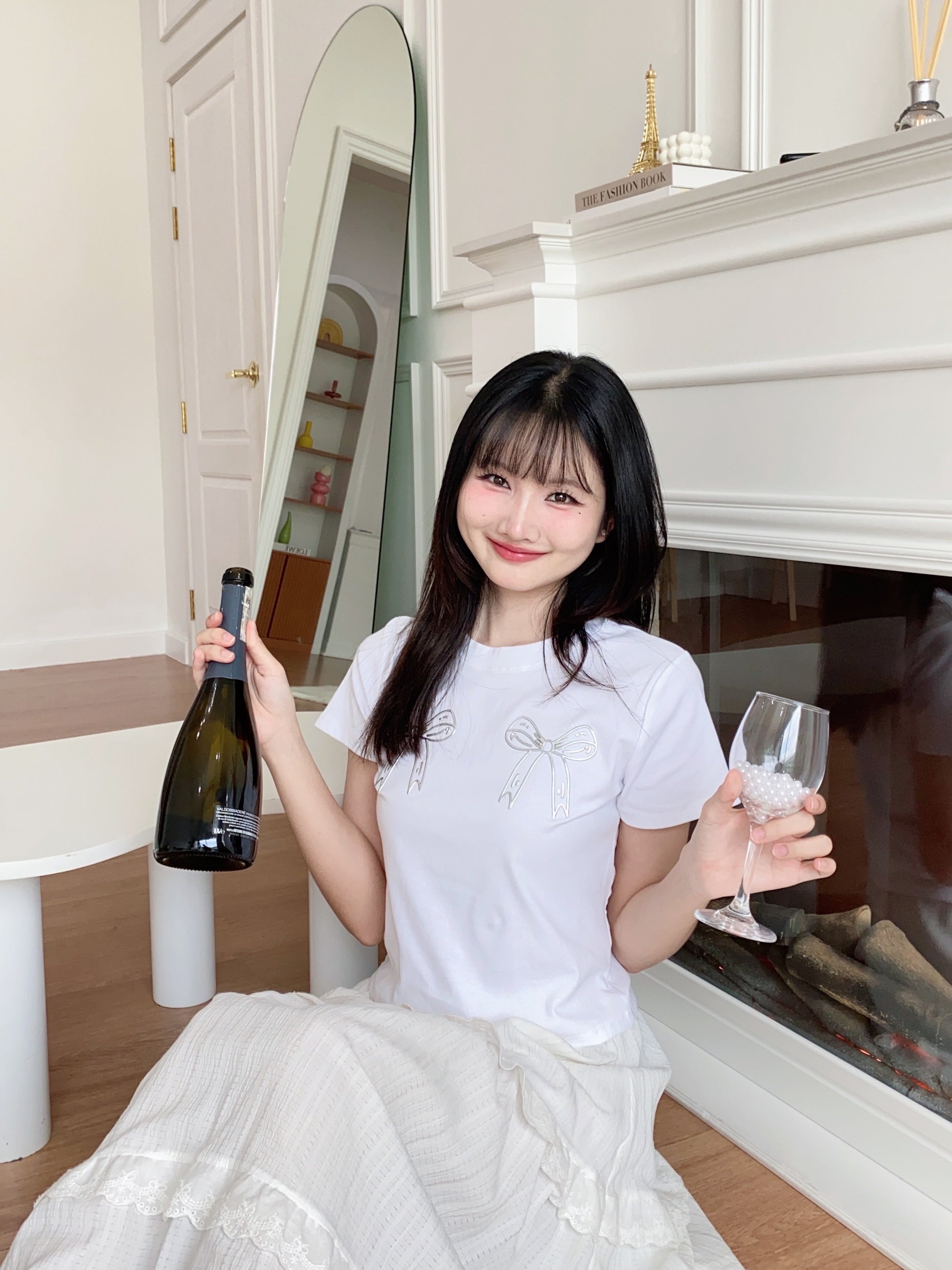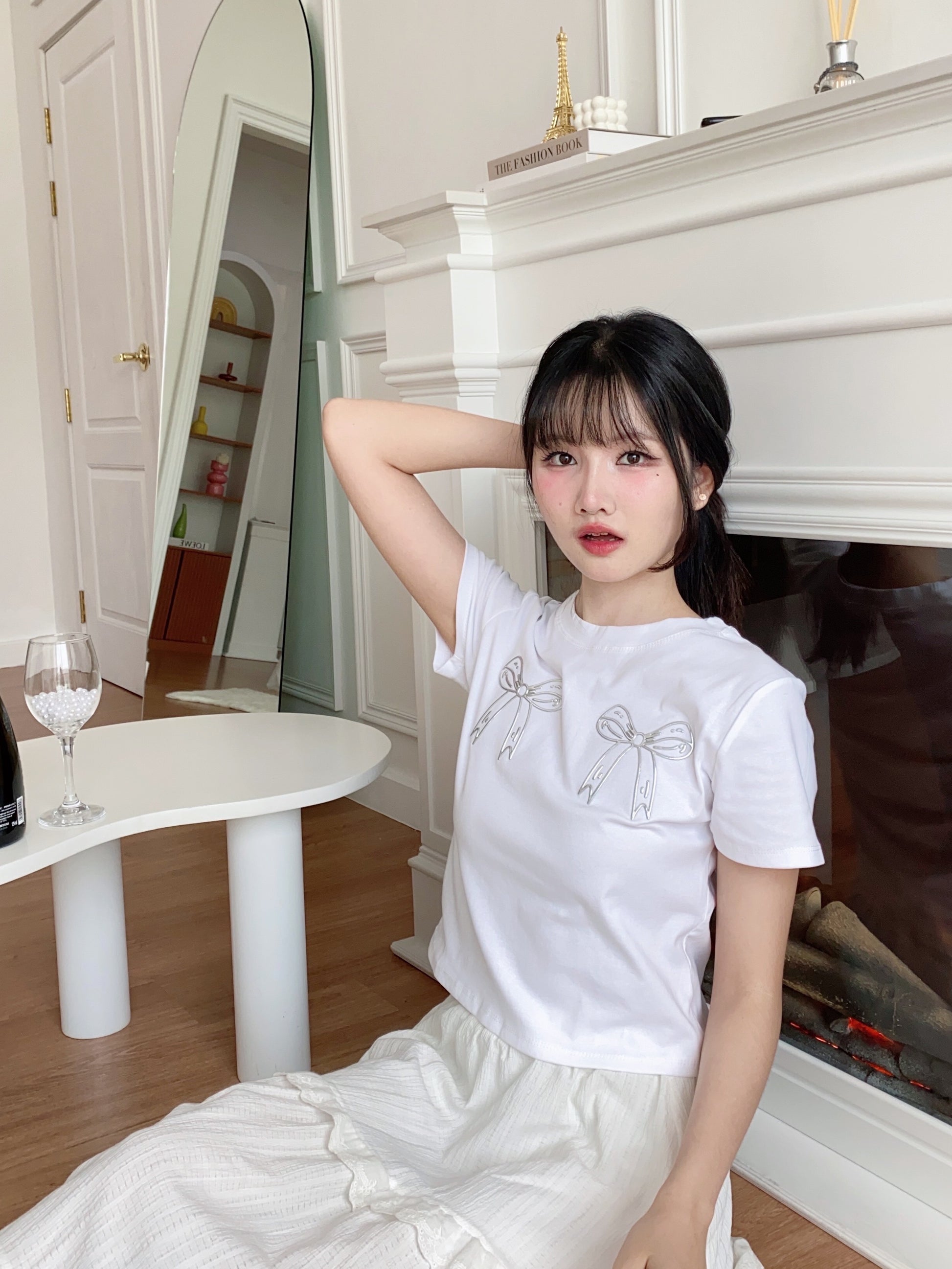 The Ribbon Charm Tee is a cute and playful short-sleeve t-shirt, available in both black and white. This top features charming printed bow designs on the chest, adding a whimsical yet chic flair to a classic tee style. Made from a soft and breathable fabric, it’s perfect for casual, everyday wear. Pair it with skirts, jeans, or shorts for an effortlessly stylish look that combines comfort with personality.
